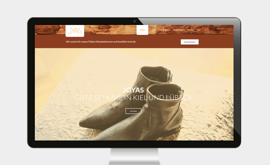 Joyas ist ein feines Schuhgeschäft mit Filialen in Kiel und Lübeck. Der Online-Shop ist wie eine dritte Filiale: Kunden können online bestellen, Anfragen stellen, oder sich die Schuhe im Ladengeschäft zur Anprobe zurücklegen lassen. Die Website ist von einer befreundeten Agentur auf Basis des Enfold-Themes erstellt worden.